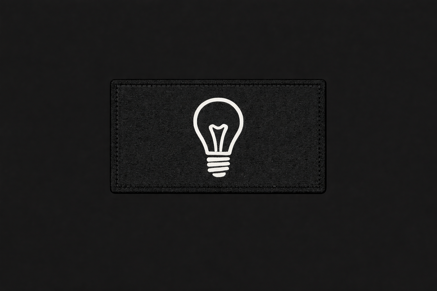Right cuff: Embroidered lightbulb patch, heat-pressed